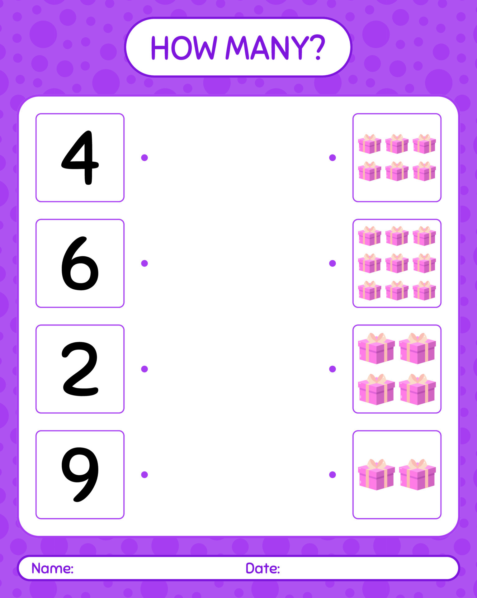 How Many Counting Game With Gift Box Worksheet For Preschool Kids Kids Activity Sheet 7981581 Vector Art At Vecteezy